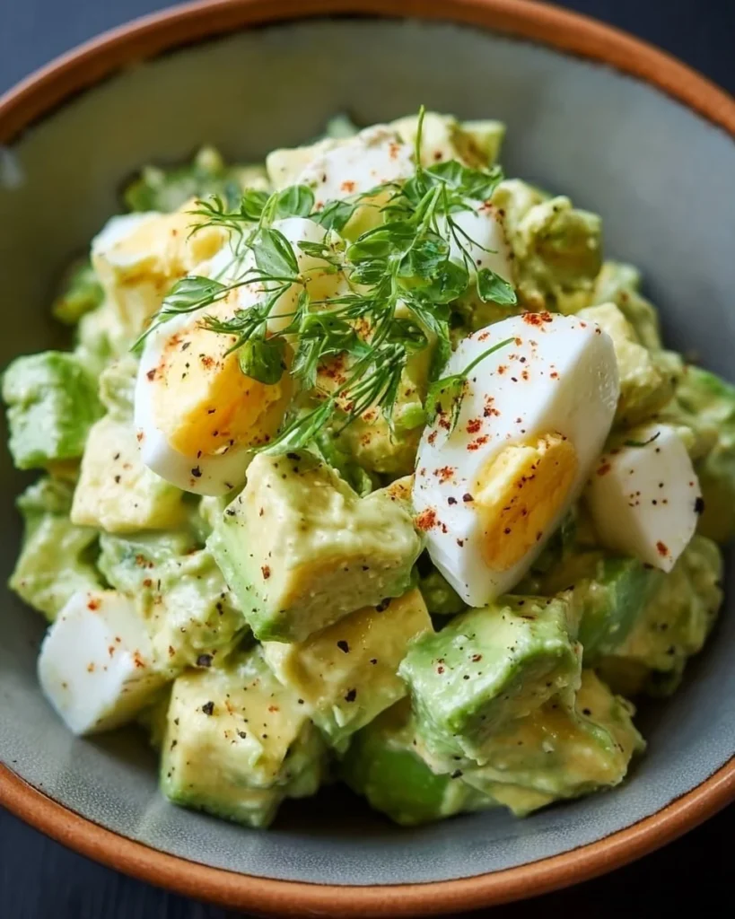 Jetzt sind Sie bereit, Ihr eigenes Geschmackserlebnis mit diesem köstlichen Avocado-Eiersalat zu kreieren. Viel Spaß beim Ausprobieren – Ihre Familie wird es Ihnen danken!