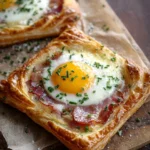 Eine köstliche Mischung aus zartem Blätterteig, herzhaftem Käse und einem perfekten Spiegelei, ideal für Frühstück oder Brunch.