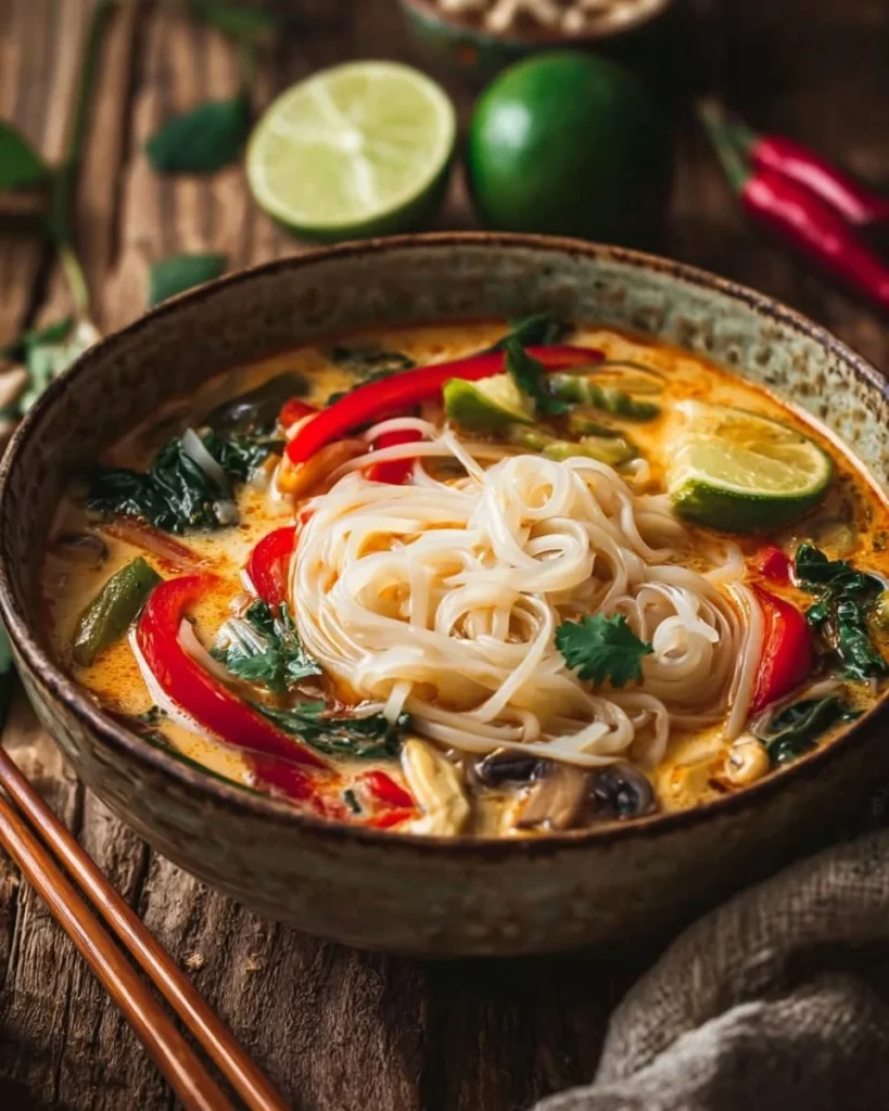 Die cremige Textur der Kokosmilch kombiniert mit der würzigen Curry-Paste macht jedes Löffelchen zu einem Fest für deinen Gaumen. Und wenn du die Suppe mit frischen, knackigen Toppings wie Koriander und Limette garnierst, erreichst du das nächste Level an Geschmacksintensität. Es erinnert an die köstliche thai-Inspiration, die einfach in jedes Herz passt. Lass dich von diesem Rezept inspirieren und bringe ein wenig Exotik auf deinen Tisch!