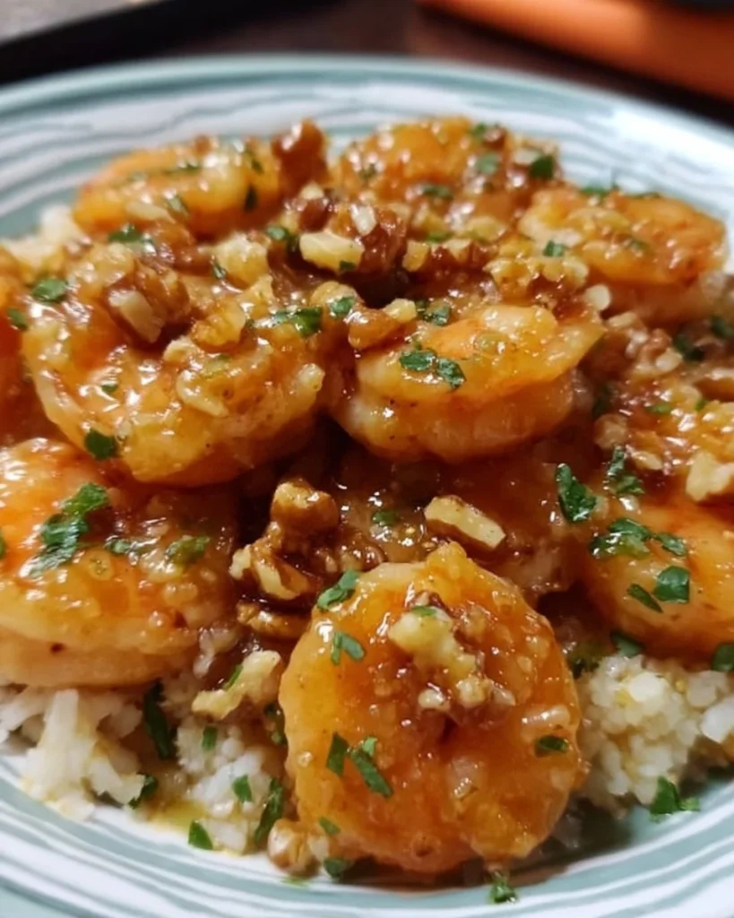 Ein einfaches, aber köstliches Gericht mit knusprigen Garnelen, süßem Honig und nussigen Aromen, ideal für Familienfeiern oder gemütliche Abende.