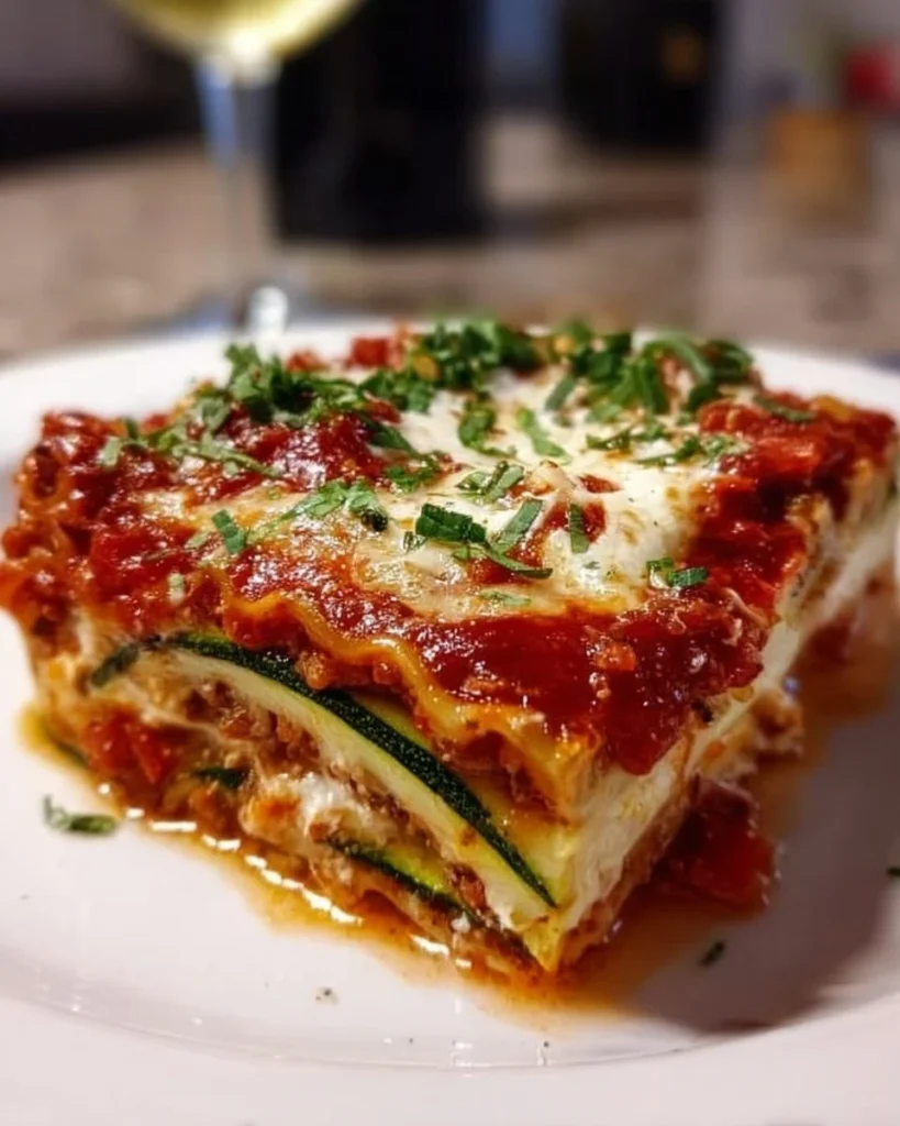 Eine gesunde und leckere Version der klassischen Lasagne, bei der Zucchini anstelle von Nudeln verwendet wird.