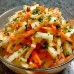Kohlrabipfirsich-Apfelsalat – der Name alleine weckt schon Neugier, oder? Wie kommt man überhaupt auf so eine ausgefallene Kombination? Vielleicht liegt es daran, dass die Deutschen Bravo rufen, wenn sie Kohlrabi hören! „Der Weg zum Herzen eines Mannes führt durch den Magen“ – und genau das macht dieser Salat möglich: frischer, knackiger Kohlrabi und süße, saftige Früchte. Wenn du noch nie zuvor Geschichten über diesen besonderen Salat gehört hast, könnte das daran liegen, dass er oft im Schatten seiner ausgefalleneren Kollegen steht. Aber keine Sorge, gib ihm eine Chance, und er wird dir das Wasser im Mund zusammenlaufen lassen. Lass uns also gleich loslegen und diesen köstlichen Salat zubereiten!