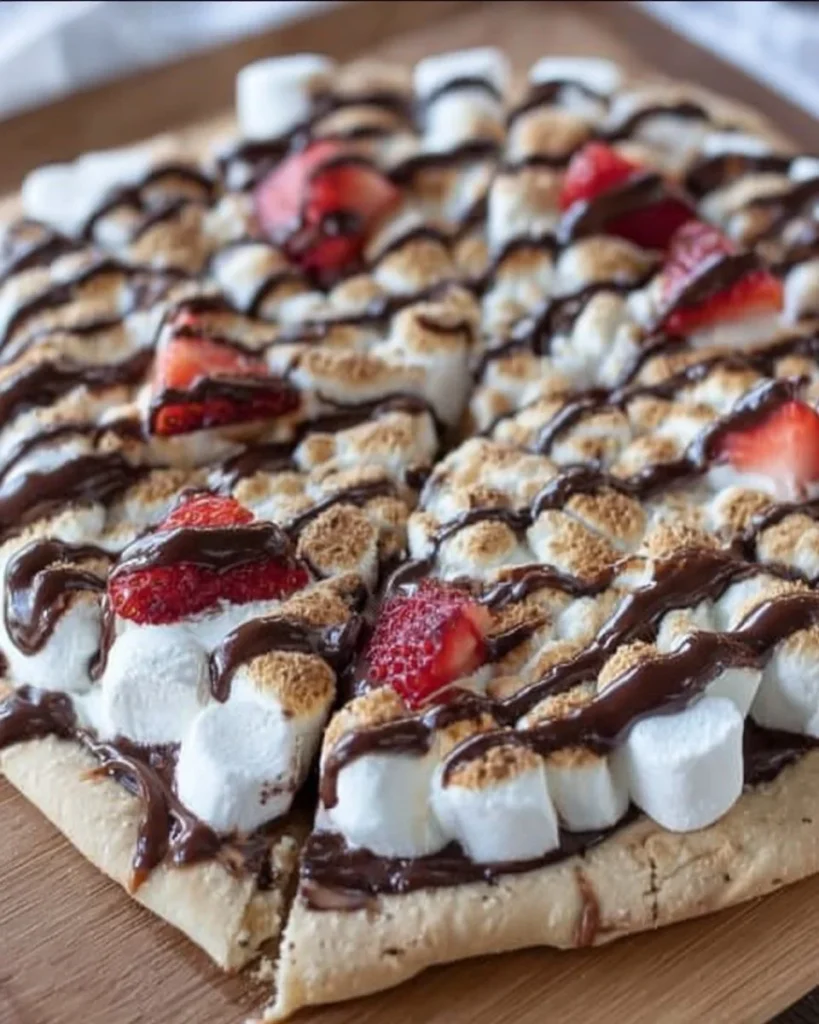 Die Nutella S’mores Dessert Pizza ist ein einfaches und befriedigendes Dessert, das in weniger als 30 Minuten zubereitet werden kann. Der Pizzaboden ist knusprig, während Nutella und geschmolzene Marshmallows eine köstliche Kombination aus süßen und schokoladigen Aromen bieten. Dies macht es zu einem großartigen Rezept für die Zubereitung an entspannten Wochenenden oder während geselliger Abende.