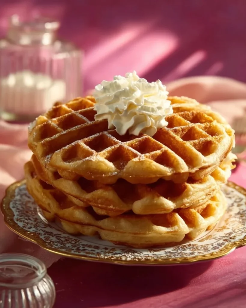 Waffeln sind mehr als nur ein Dessert; sie sind Erinnerungen, die in jeder knusprigen Bissigkeit stecken. Omas Waffelteig hat die Fähigkeit, eine simple Zutat zu etwas Magischem zu machen. Wenn Sie diese Waffeln erstmals probieren, werden Sie die goldene, knusprige Außenseite und die zarte, fluffige Innenseite schätzen. Voller Abenteuer und Freude, sind sie das ideale Gericht für Familientreffen oder entspannte Abende zu Hause. Wussten Sie, dass der Ursprung von Waffeln bis ins Mittelalter zurückreicht? Eine kleine Vorstellung, wenn Sie jahrelang mit der Familie Waffeln gebacken haben! Während Sie dieses Rezept ausprobieren, denken Sie vielleicht auch an unser Rezept für Buttermilchpfannkuchen – sie sind beide einfach zuzubereiten, doch Omas Waffelteig hat diesen besonderen, nostalgischen Charme. Bereiten Sie sich darauf vor, sich in die warme Umarmung von Omas Waffelteig zu verlieben!
