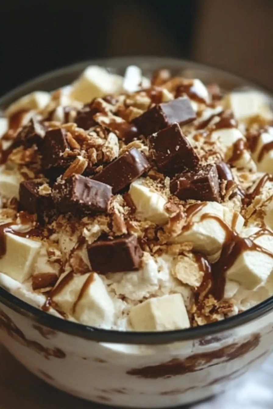 Snickers-Salat ist ein beliebtes und einfaches Dessert, das die süßen und herzhaften Aromen von Äpfeln und Snickers kombiniert. Es ist perfekt für Partys, Feiern oder einfach als süßer Snack am Nachmittag. Dieser Salat ist schnell zubereitet und benötigt nur wenige Zutaten. Jeder wird die Kombination aus Karamell, Schokolade und frischen Äpfeln lieben!