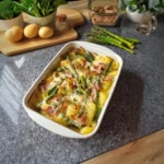 Spargelauflauf mit Schinken und Kartoffeln