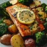 Zitronenbutterlachs mit Kartoffeln und Brokkoli ist einfach zuzubereiten und benötigt nur 30 Minuten von der Vorbereitung bis zum Servieren. Es ist ein tolles Gericht, das sowohl geschmacklich als auch optisch begeistert.